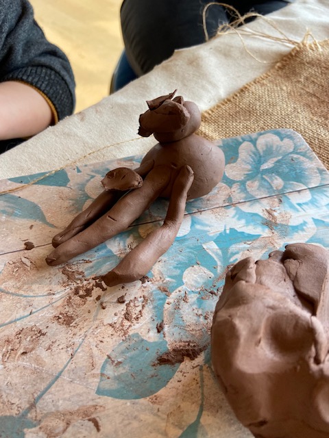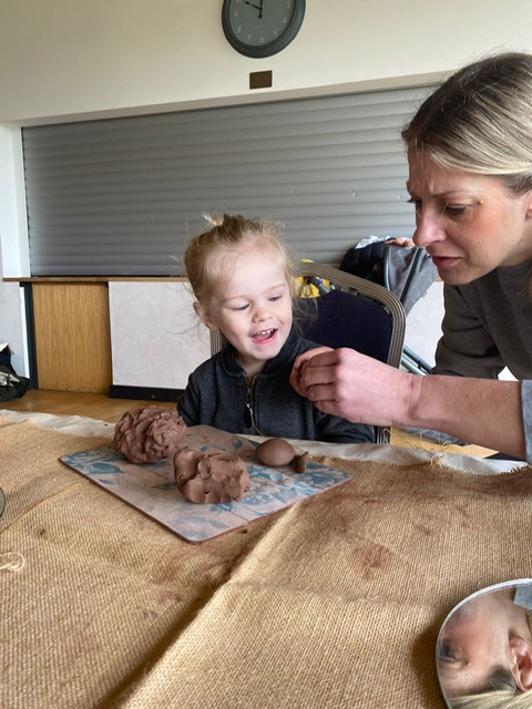 After talking about my project with artist Pete Moorhouse, he suggested having clay available at every creative session. He said clay offered such a rich learning experience for children and adults, its inexpensive, and is often a material that children have not had contact with before. He also suggested reading a pamphlet all about clay produced by The Froebel Trust, which I strongly recommend if you are interested in learning more about using clay with your child or in your setting.