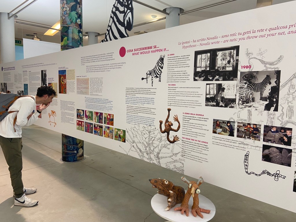 I also really liked reading about journalist and writer Gianni Rodari and his work with some of the Reggio schools. The exhibition display states: whilst playing alongside children, he would often use the phrase, ‘What would happen if…?” inviting children to step into an exciting imaginary world of interesting scenarios. Around the exhibition there are countless photos and stories captured from the children, each unique and individual. I love working in this way as it poses no right or wrong answers, every child is free to express their ideas in their own way without any limitations.