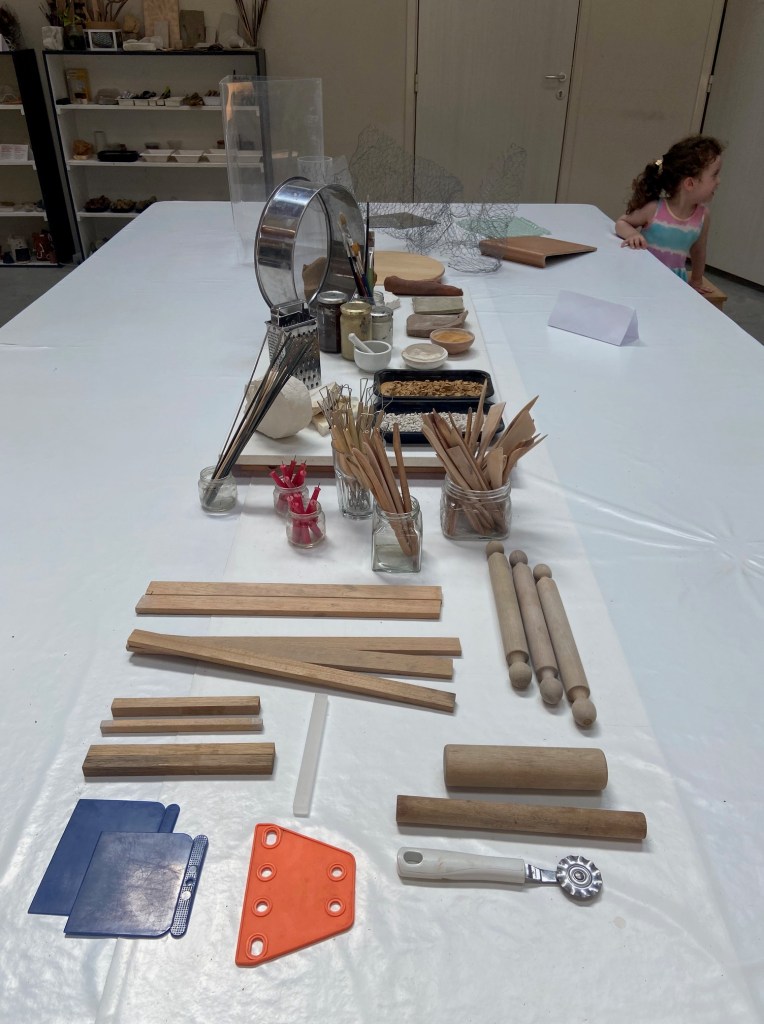 Among the endless tools for mark making in clay, there were shelves upon shelves of clay in multiple forms – different shades of dried clay, in different gradients and colours. It is interesting to observe the centre describing ‘experimentations’ within clay – a little sign said ‘The relationship with objects that leave traces, that engrave and memorize the passage, the relationship, objects that let themselves be traversed by the clay, objects that become tools to produce and reproduce serial forms to modulate and modify’.