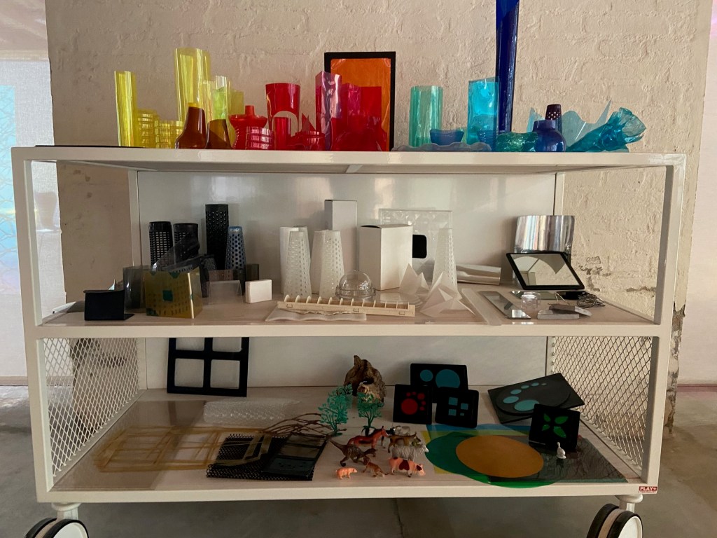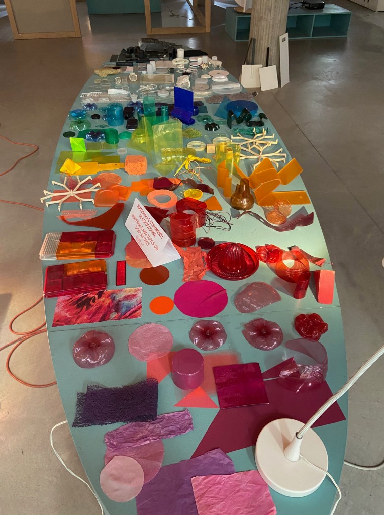 Wandering around the ateliers, it is remarkable to observe the way items are colour coded and organised on every table or shelving unit. There is something so aesthetically pleasing seeing pieces of everyday plastic found in our everyday lives, sitting amongst other pieces of a varying shade, flowing into a rainbow effect of colour exploration.
